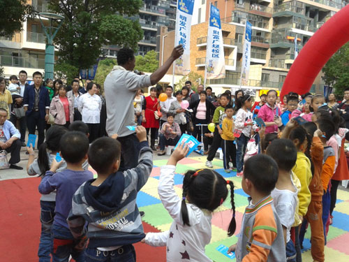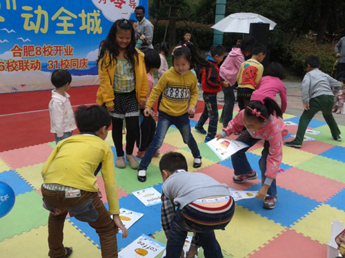今天是合肥蓝宇家天下校开业的第二天。上午八点,活动尚未开始,便有家长携带孩子来到了家天下校校区参与活动。此后不久,到场的家长和孩子越来越多,活动现场的气氛也越来越高涨。上午九点,活动正式开始。
