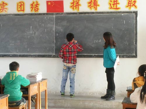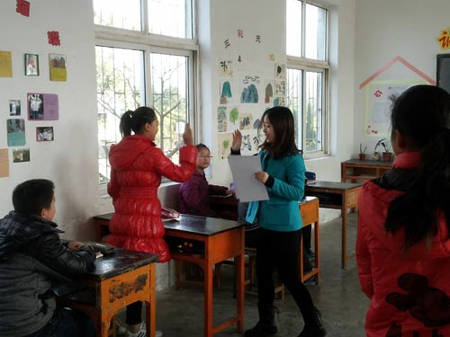 淮南蓝宇外语学校王孝玲老师给六年级的学生上英语课