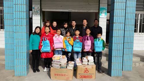 上午九点半,淮南蓝宇外语学校校长、教务主管等一行人经过一个多小时的长途跋涉,来到此次活动的地点淮南市大通区农场小学,此行给孩子们一共准备了500多本课外书和英语教材,同时带去了一些学习文具。