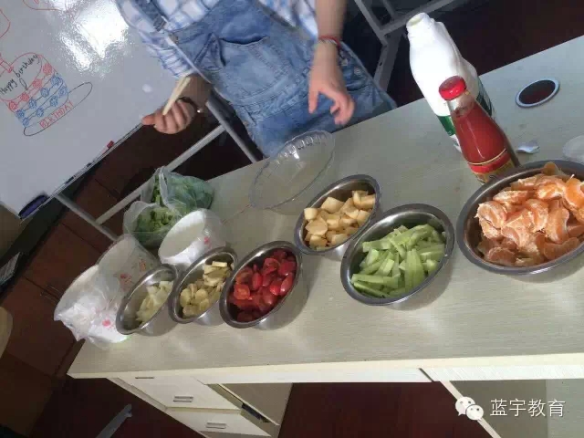 孩子们和老师一起制作水果沙拉,劳动节特别活动哦,自己动手最快乐!碰巧刘思扬小朋友过生日,跟大家一起分享蛋糕呢!