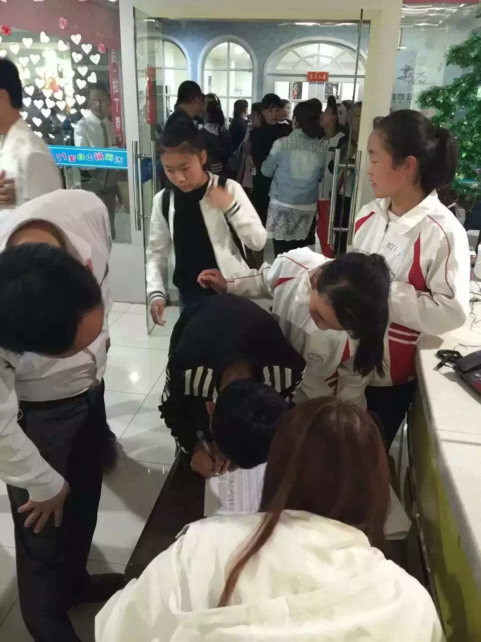 家长们带着孩子们早早来到了比赛点...门庭若市...好不热闹~