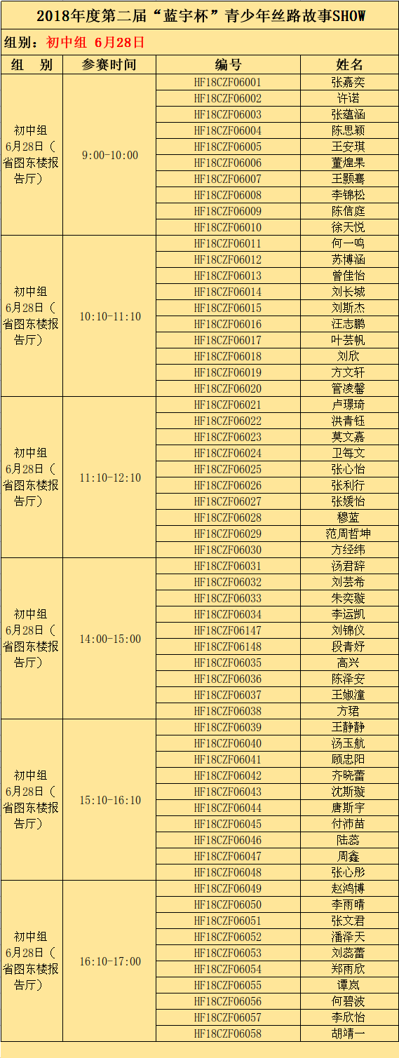 请大家仔细查阅所属时间段,注意比赛日期和具体地点,