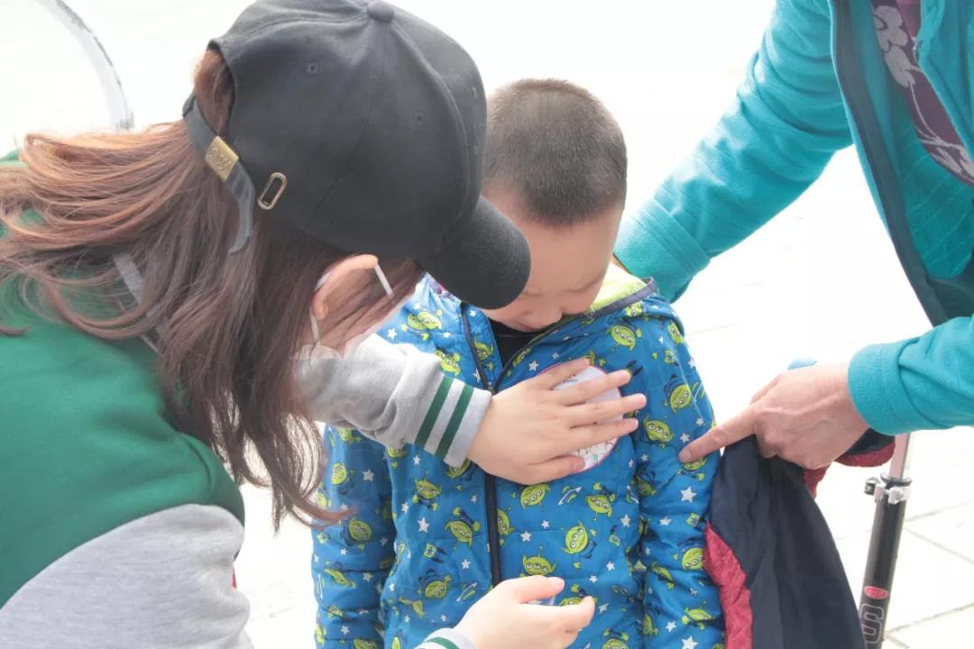▲老师为小选手贴上号码牌