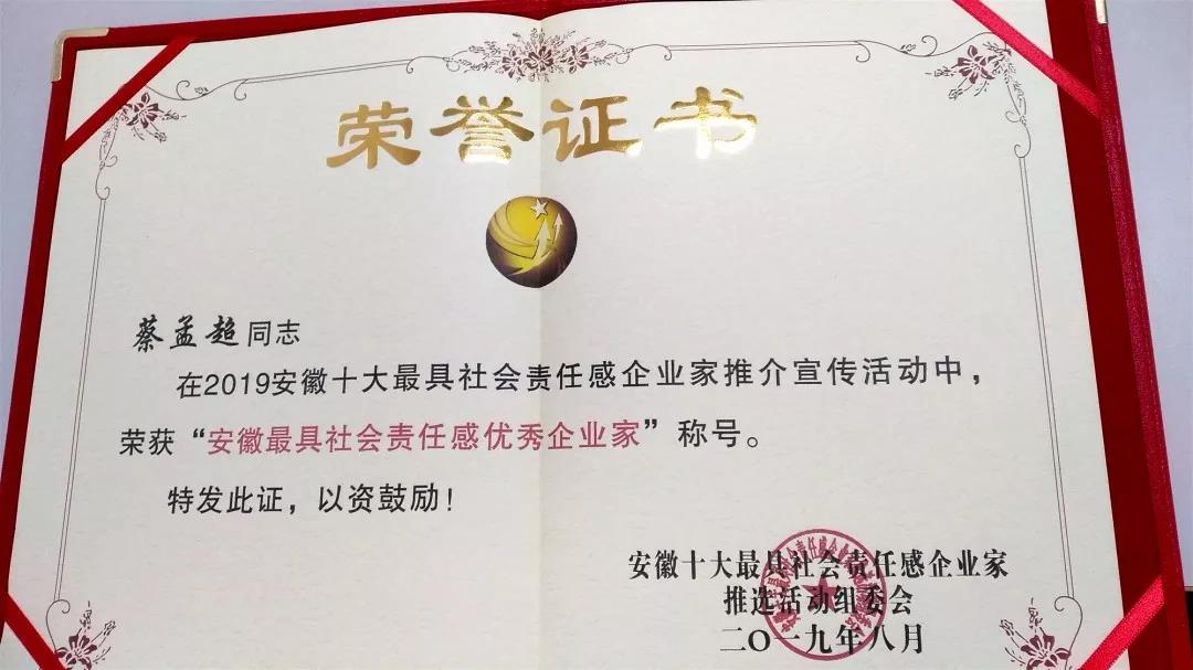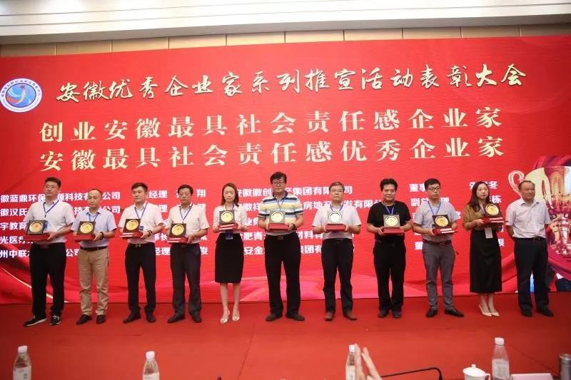 在8月25日举行的,2019安徽优秀企业家系列推选活动表彰大会上,蓝宇教育集团董事长蔡孟超先生,众望所归获得“安徽最具社会责任感优秀企业家”光荣称号!据悉,本届优秀企业家评选活动,是由安徽省创新创业企业服务中心主办,安徽省徽商发展研究院、安徽广播电视台等企事业单位协办;皆在弘扬表彰我省企业和企业家崇高的社会责任感、诚信和进取意识、关爱和奉献精神!