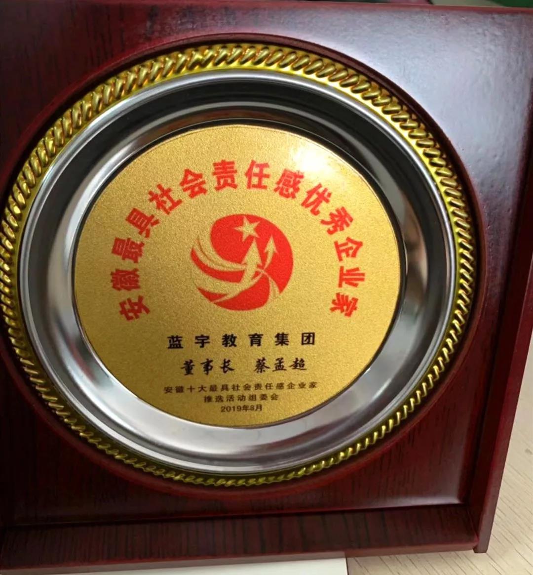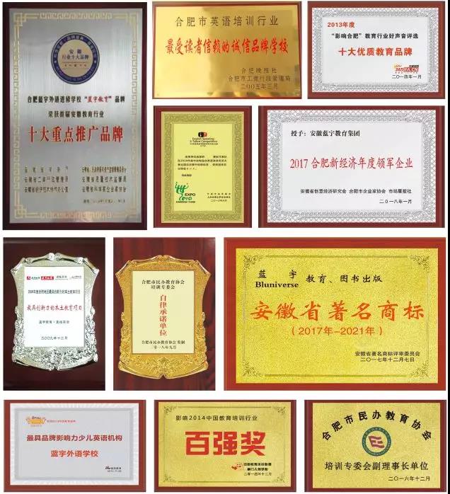 为了让更多的孩子走向国际,让世界更好地认识中国,蔡孟超积极推动蓝宇与韩国、美国、加拿大等多所学校建立长期国际教育交流合作关系,互相提供教育资源,开拓孩子们的国际视野。专业铸就优秀,细心沉淀卓越。在蔡孟超的带领下,安徽蓝宇已经成为集英语教学及产品研发、国际师资引进与培训、文化交流与策划、技术引进与创新为一体的综合型教育集团。蓝宇外语学校凭借独特的教学模式和优秀的品牌影响力,获得孩子、家长和社会各界人士的一致认可和称赞;并多次被教育部门评为优秀办学单位、诚信办学单位和优秀英语培训机构,被多家媒体评为消费者信赖的培训机构、诚信办学品牌学校,收获了众多荣誉。