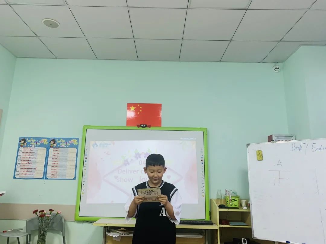 他们在台上羞涩地念着卡片上的话,感情真挚。